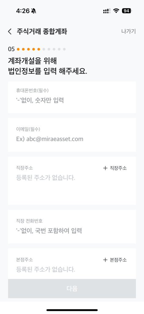 계좌 개설을 실제로 진행해보겠습니다.