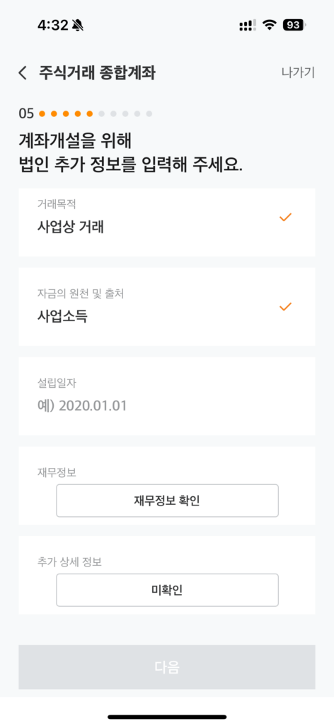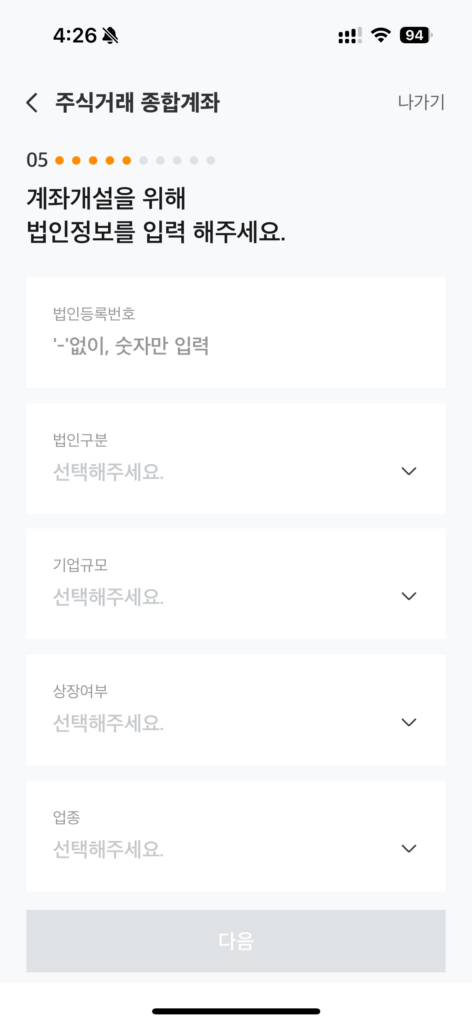 그리고는 법인 정보를 입력해야하는데 일반적인거라 어렵지 않습니다.